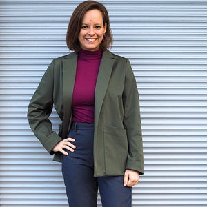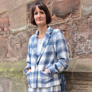 Hier zeige ich Euch meine Cléo aus Punta di Roma. Ich mag die glatte Haptik an diesem Stoff, wirkt sehr edel und businesstauglich. Vor allem kommen die schönen Faltendetails am Halsausschnitt und an den Ärmeln sehr zur Geltung. So ist die Jacke selbst aus einem schlichten Stoff besonders.