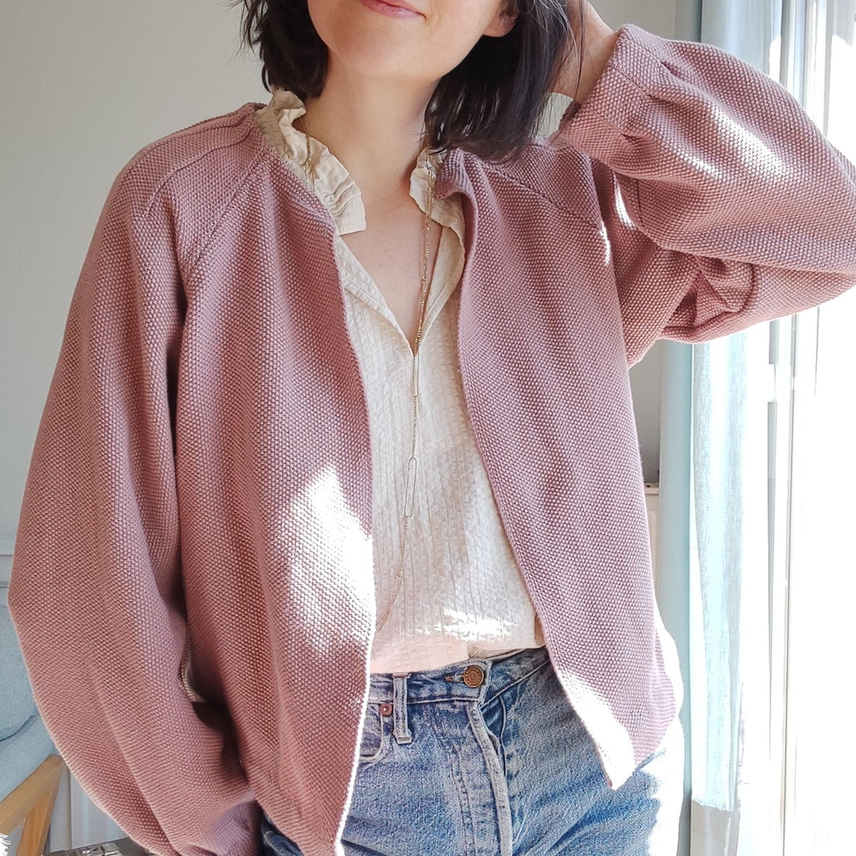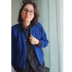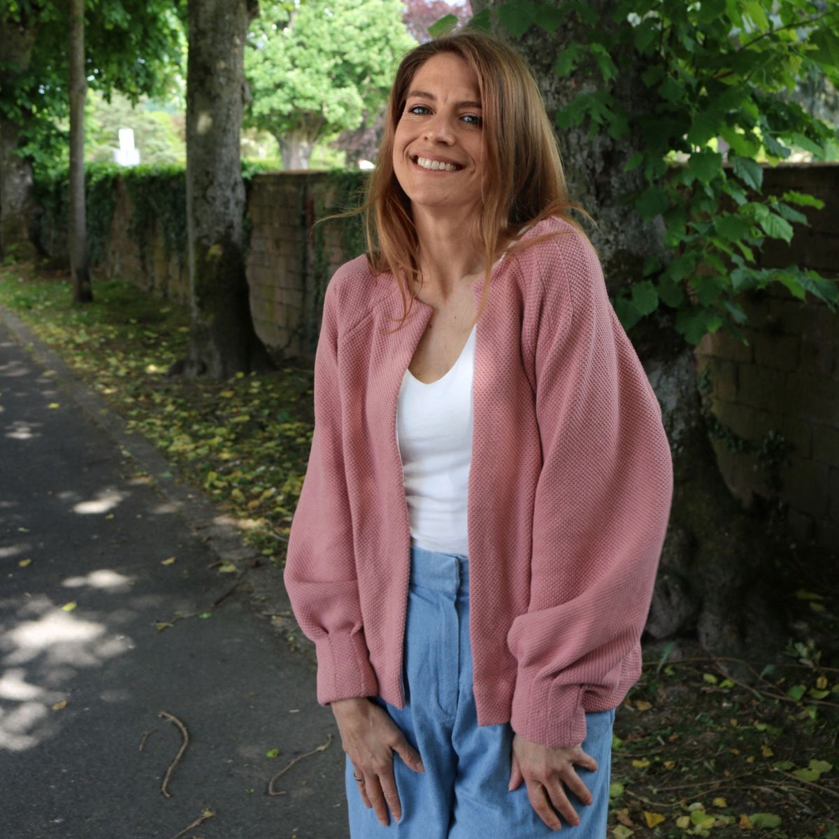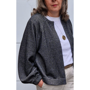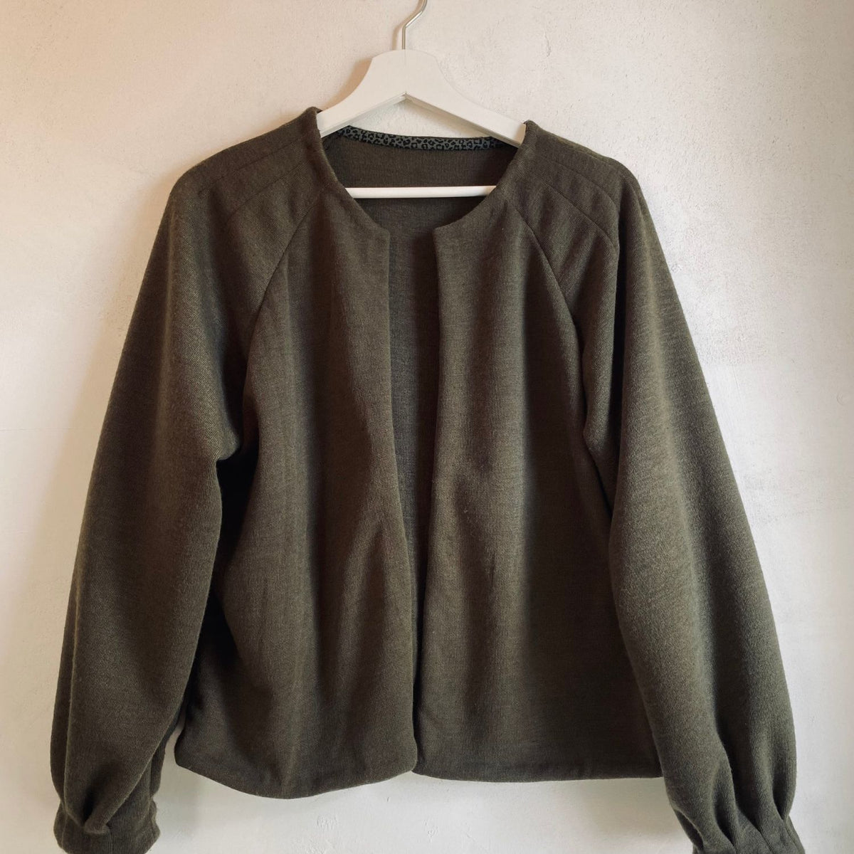 Handmade im wahrsten Sinne des Wortes, denn bei der hochwertigen Verarbeitung von Cléo werden die Nahtzugaben innen von Hand umgenäht. Das ist zwar zeitaufwendiger als die Variante mit der Overlock, aber immer noch viel schneller als gestrickt 😉 Strickjacke Cléo hat außerdem auch noch schöne Faltendetails am Halsausschnitt und an den Ärmeln. So ist die Jacke selbst aus einem schlichten Stoff besonders.