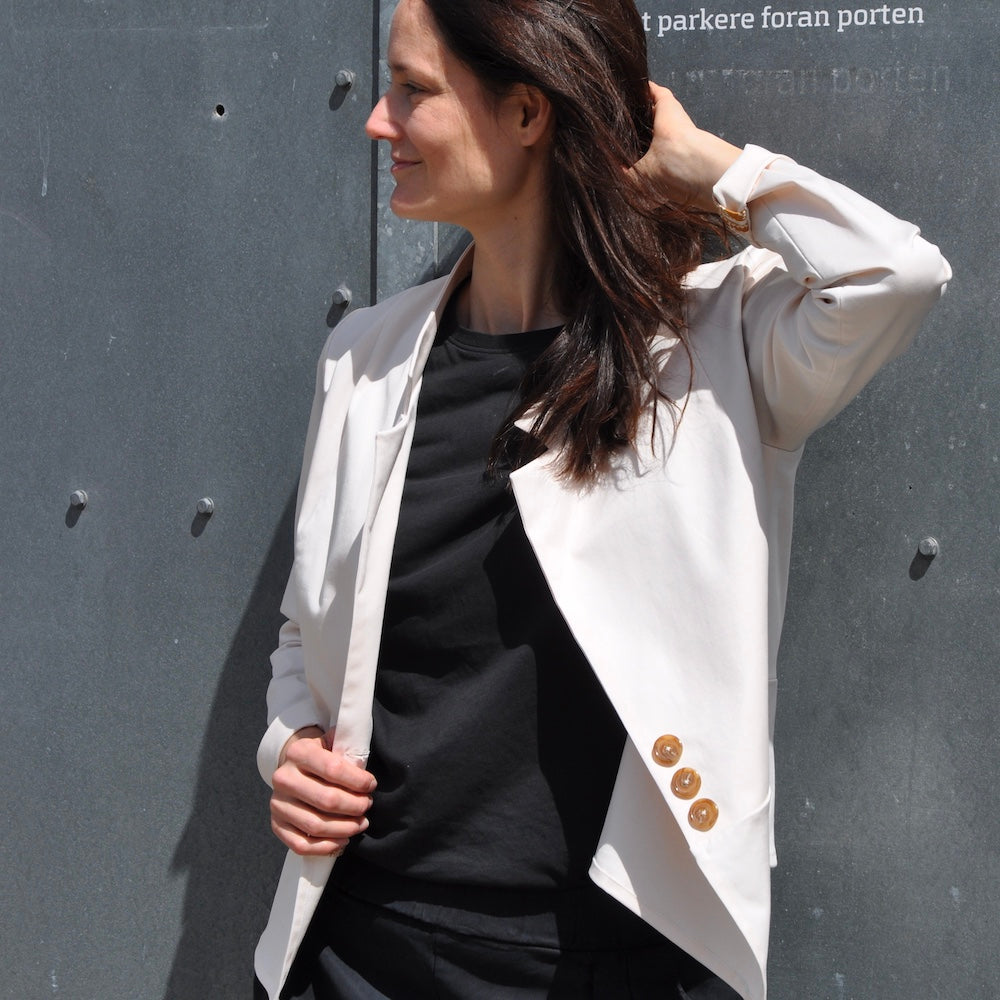 Hier zeige ich Euch meine Cléo aus Punta di Roma. Ich mag die glatte Haptik an diesem Stoff, wirkt sehr edel und businesstauglich. Vor allem kommen die schönen Faltendetails am Halsausschnitt und an den Ärmeln sehr zur Geltung. So ist die Jacke selbst aus einem schlichten Stoff besonders.