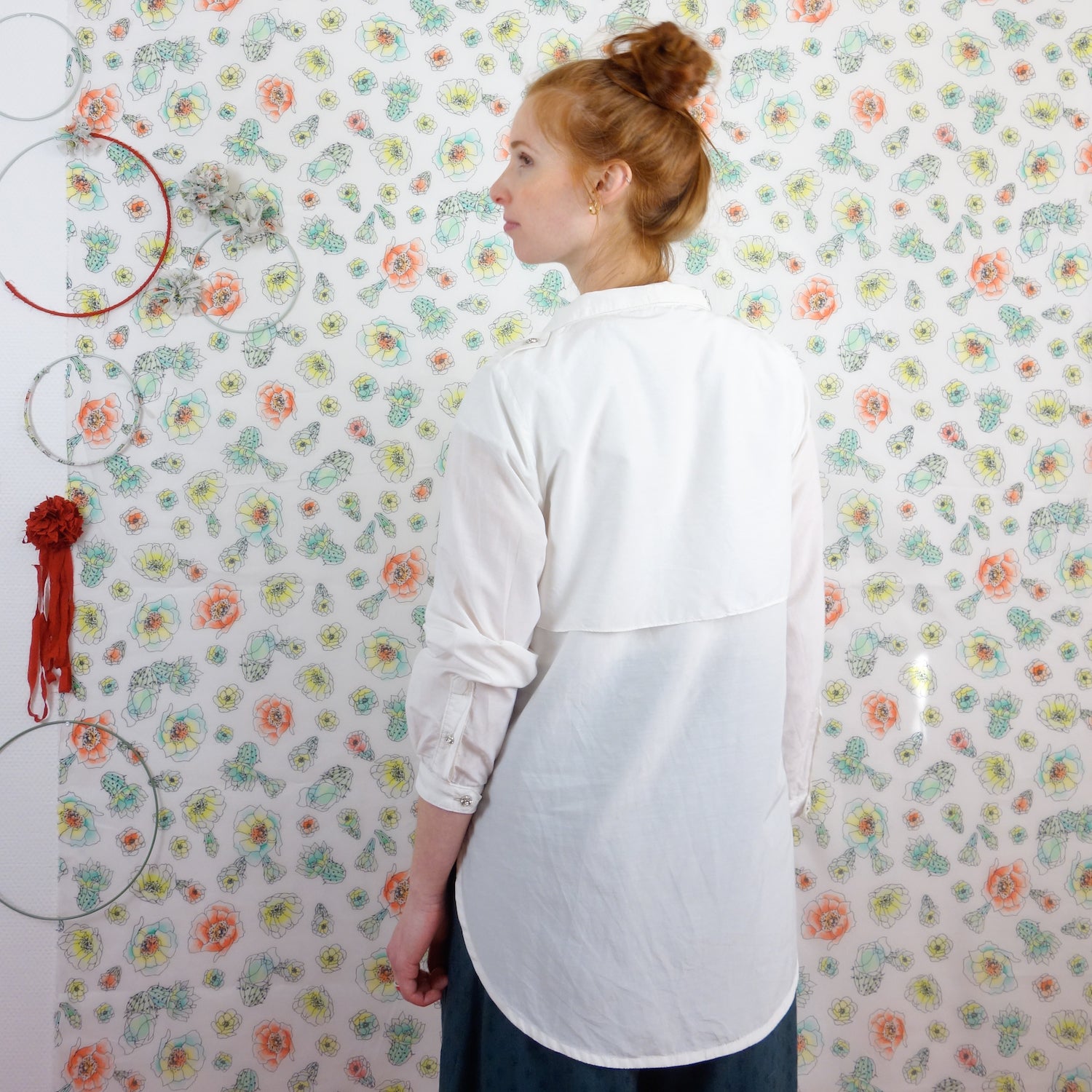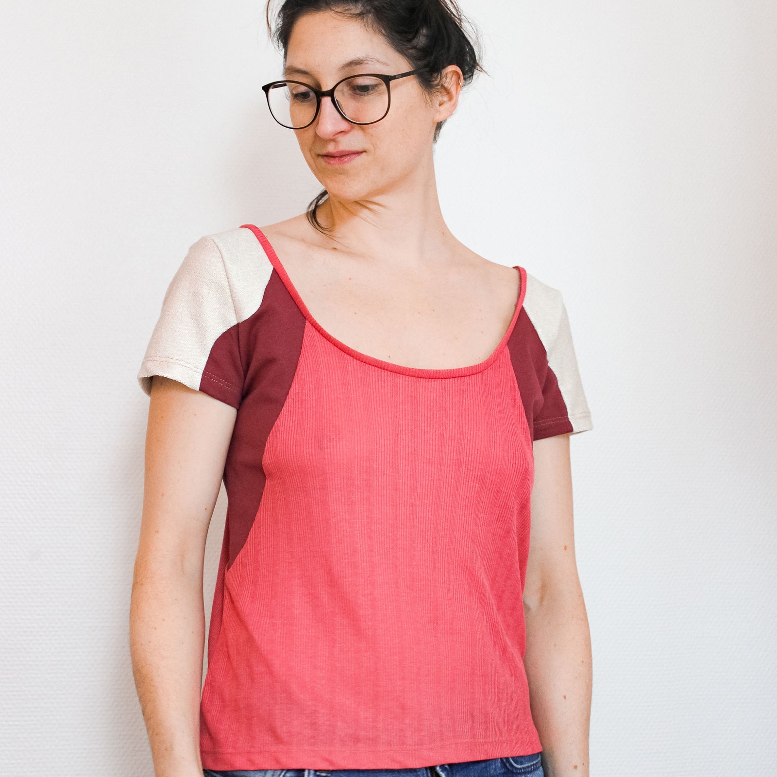 Ich habe mir diesen Schnitt schon zwei mal genäht. Aus sehr fließendem Modaljersey mit langen Ärmeln. Und, besonders edel, weiß, ärmellos, Vorderteil aus feinstem Hanfwebstoff (Leinen geht sicher auch) kombiniert mit Rückenteil aus Jersey. Sieht sehr edel aus. Mag es. denke, ich muss mir mal wieder eines nähen. Auf den Fotos die ungebügelte Version in lässig. ;-)