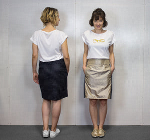 Für diesen klassischen Rockschnitt kannst du viele Stoffarten verwenden, wichtig ist, dass es ein gewebter Stoff ist, der nicht oder wenig knittert.