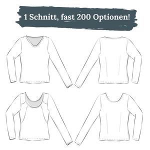 Für das Schnittmuster Shirt/Schlauchkleid Amy gibt es eine Nähreise (= ausführlicher Online-Nähkurs) mit den folgenden Inhalten:
