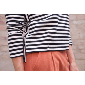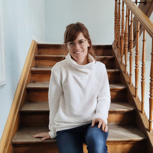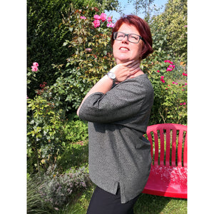 Handmade im wahrsten Sinne des Wortes, denn bei der hochwertigen Verarbeitung von Cléo werden die Nahtzugaben innen von Hand umgenäht. Das ist zwar zeitaufwendiger als die Variante mit der Overlock, aber immer noch viel schneller als gestrickt 😉 Strickjacke Cléo hat außerdem auch noch schöne Faltendetails am Halsausschnitt und an den Ärmeln. So ist die Jacke selbst aus einem schlichten Stoff besonders.