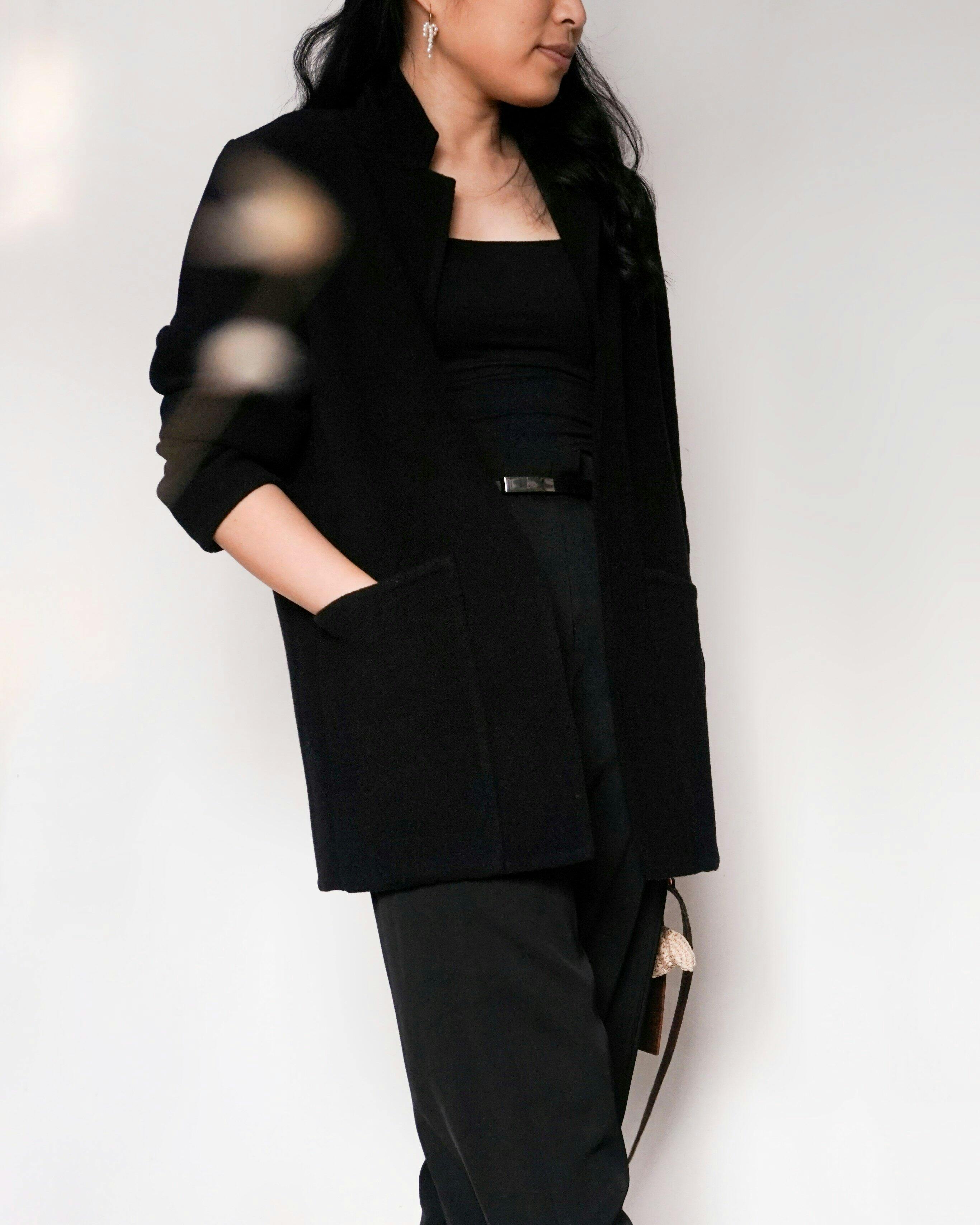 Anouk lässt sich auch wunderbar aus einem Wollstoff nähen. Ich habe mich hier für eine Doubleface-Verarbeitung entschieden, die etwas zeitaufwändiger ist, aber die Arbeit lohnt sich. Meine Version ist dadurch ungefüttert, hält durch den kuscheligen Stoff aber trotzdem schön warm.